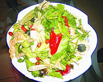 1、菜洗凈,瀝凈余水,切成細絲,撒上鹽5—10分鐘殺去生味,撇掉余水,撒上姜末、蒜泥、味精,拌勻后裝盤;