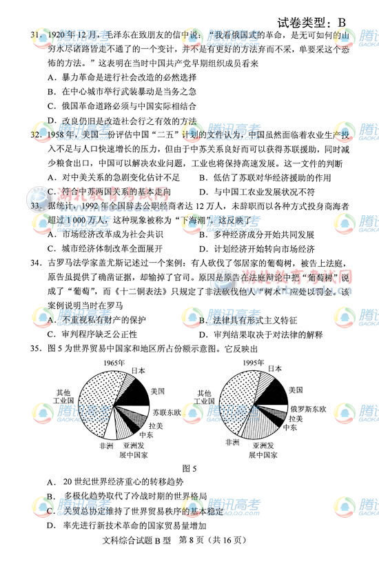 2012高考湖北卷B高考文綜真題及答案公布(15)