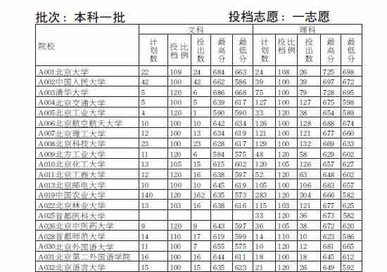 山東省2012年高校招生投檔情況統計表