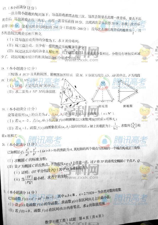 2014年四川高考數(shù)學(xué)(理)真題及答案(圖片版)(4)