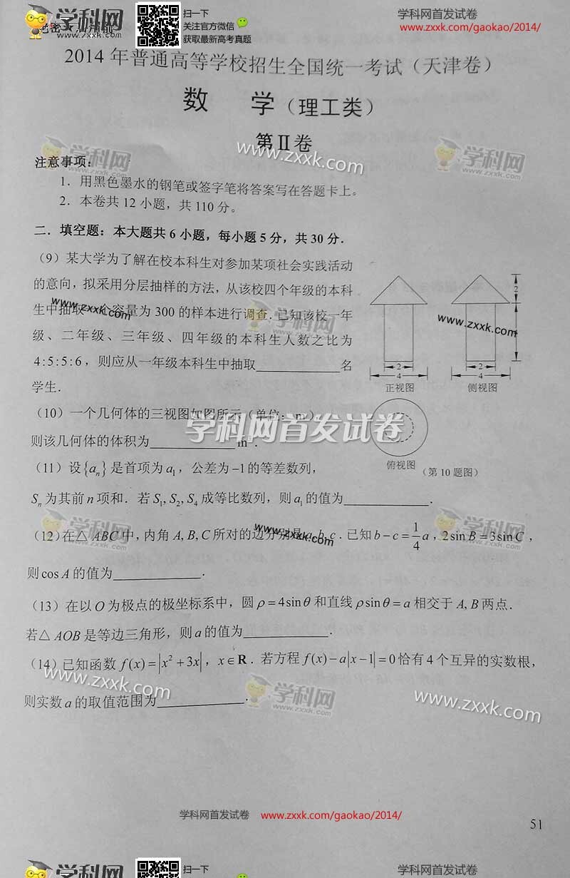 2014年天津高考理科數學真題及答案(圖片版)(3)
