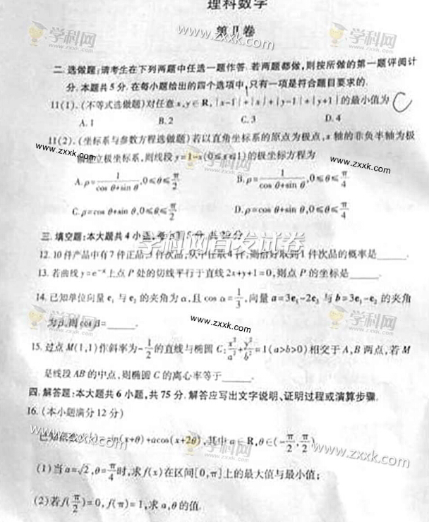 2014年江西高考數學(理)真題及答案(圖片版)(3)