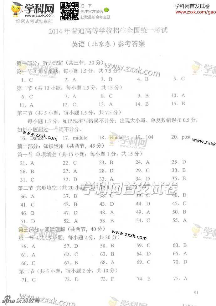 首發(fā)2014年北京高考英語真題及答案(圖片高清版)(17)
