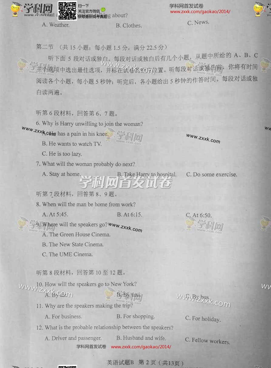 2014年山西高考英語真題及答案(圖片版)(2)