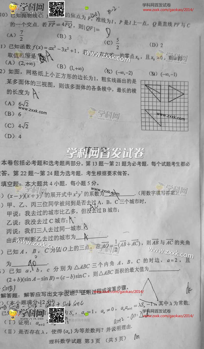 首發2014年高考新課標全國卷Ⅰ數學試卷及答案(理)(3)