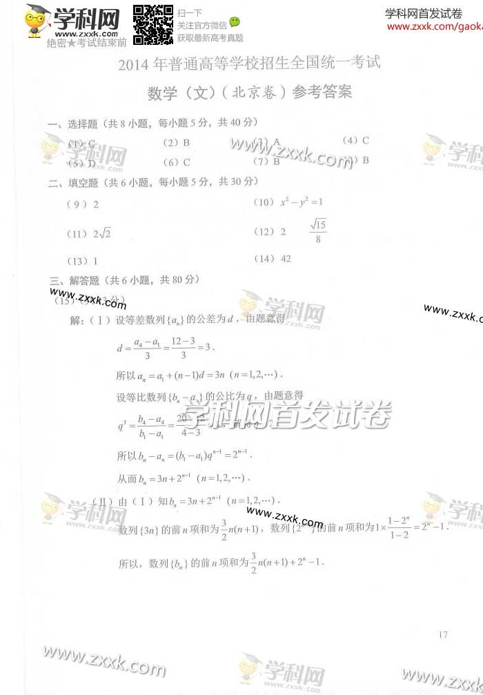 2014年北京高考文科數(shù)學(xué)真題及答案(圖片版)(7)