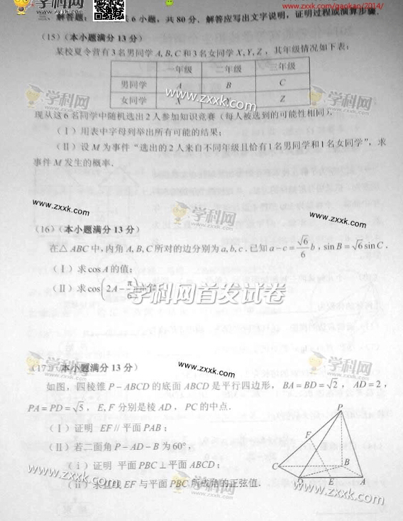 點擊查看更多省份:2014年全國高考試題及答案 2014年高考成績查詢及錄取控制分數線