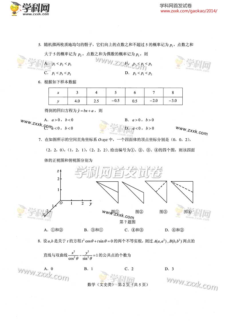2014年湖北高考數學(文)真題及答案(圖文版)(2)