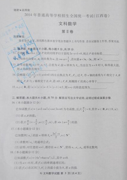 首發(fā)2014年江西高考數(shù)學(xué)(文)真題及答案(圖片版)(3)