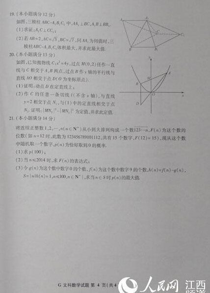 首發(fā)2014年江西高考數(shù)學(xué)(文)真題及答案(圖片版)(4)