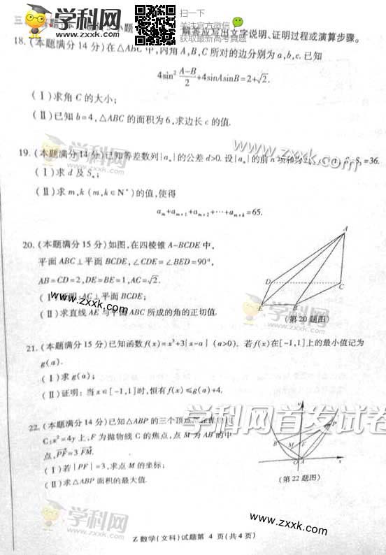 2014年浙江高考數學文科真題及答案(圖片版)(4)