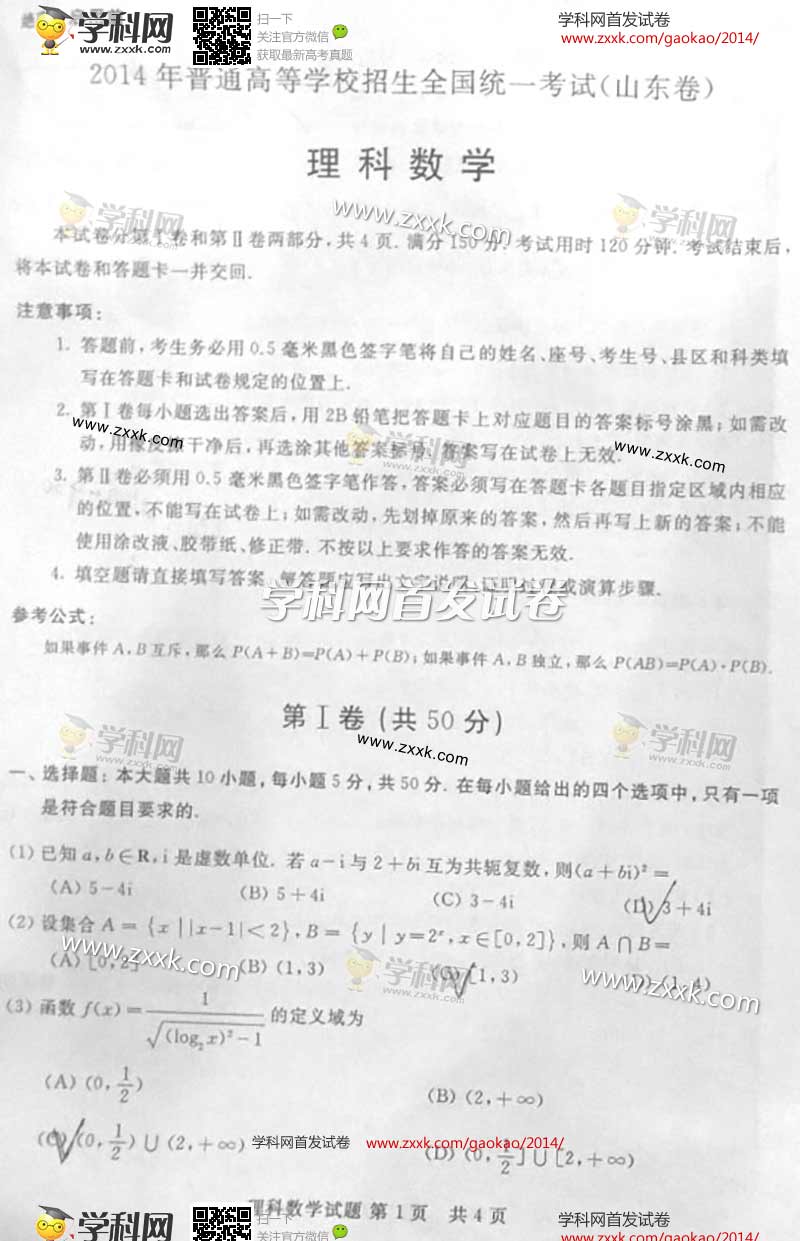 2014年山東高考數(shù)學(xué)(理)真題及答案(圖片版)