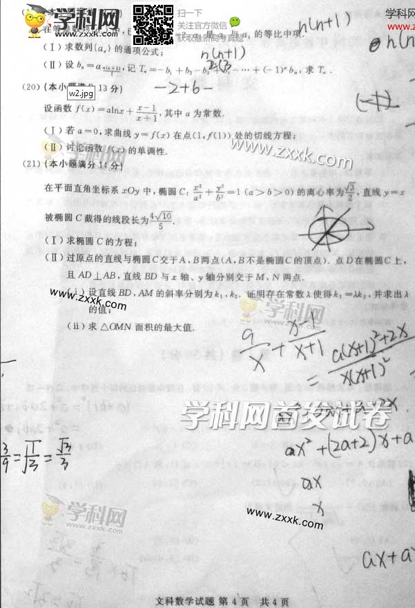 2014年山東高考數學(文)真題及答案(圖片版)(4)