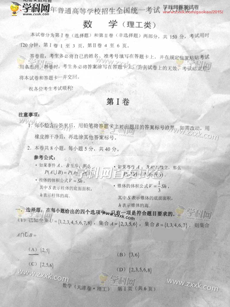 2015年天津高考數學(理)試題及答案解析