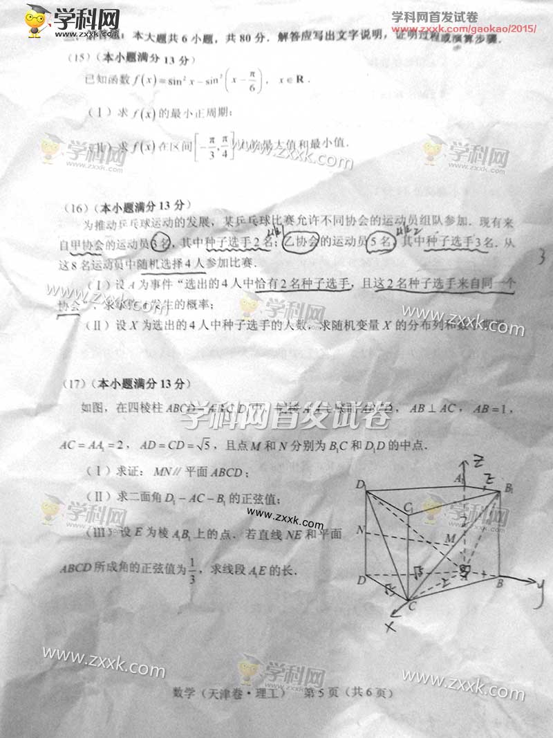 2015年天津高考數學(理)試題及答案解析(5)