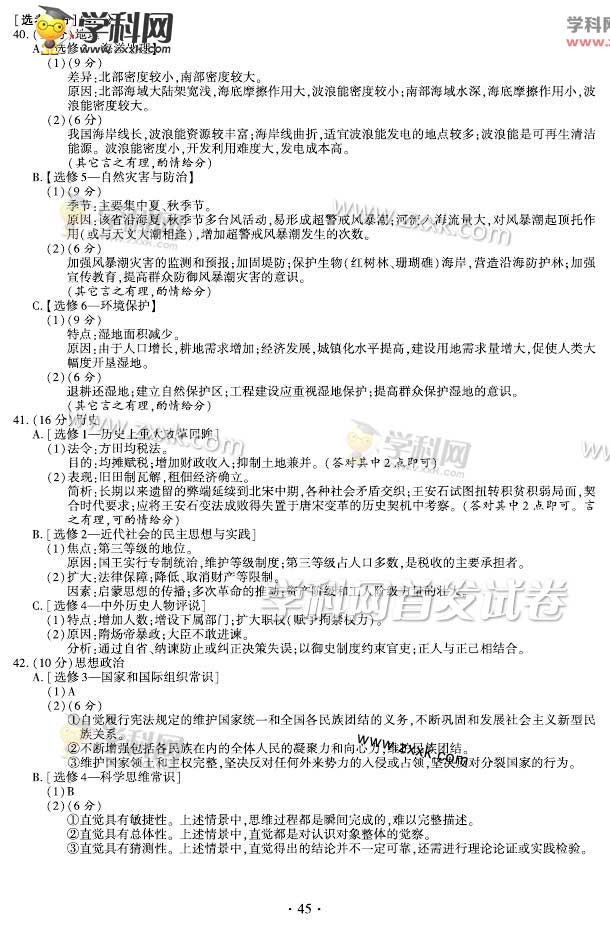 2015年福建高考文科綜合試題及答案解析(9)