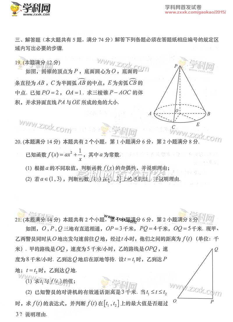 2015年上海高考數(shù)學(xué)(文)試題及答案解析