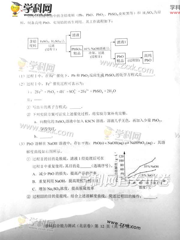 2016年北京高考理綜真題及答案(12)