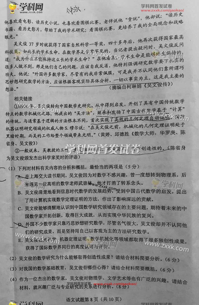 2016年西藏高考語文真題及答案(全國卷2圖文)(8)