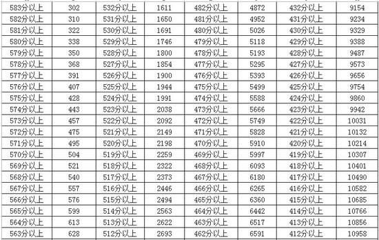 2016年寧夏高考分?jǐn)?shù)1分段統(tǒng)計(jì)表(文科)(2)