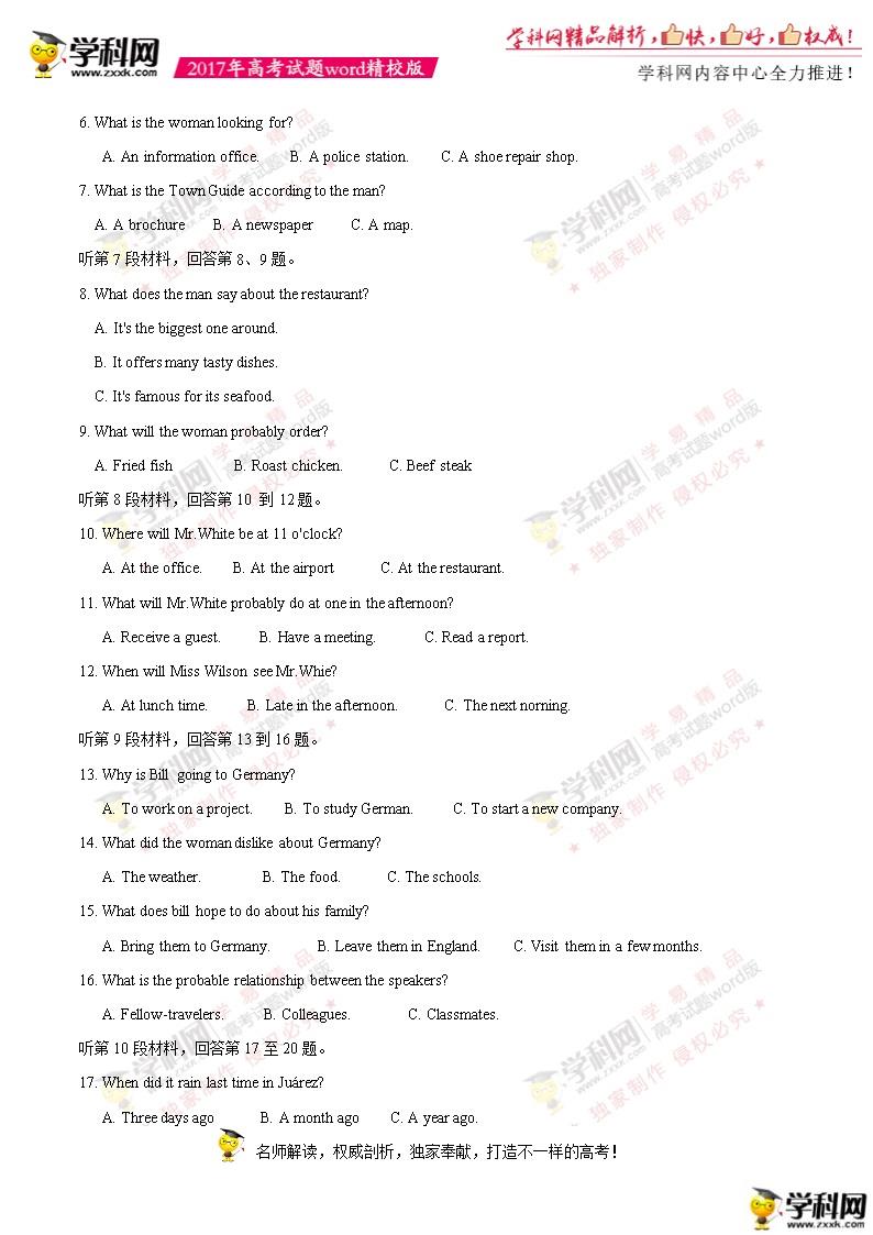 2017年浙江高考英語真題及答案(2)