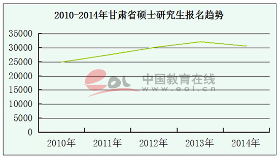2014年考研首次取消“不超過40歲”的年齡限制,研究生教育收費制度將全面實行。中國教育在線《2014年全國研究生招生數據調查報告》顯示,2014年全國碩士研究生報考熱度趨緩。2014年甘肅省碩士研究生報考人數達30670人,比2013年減少1561人,降幅約4.8%。