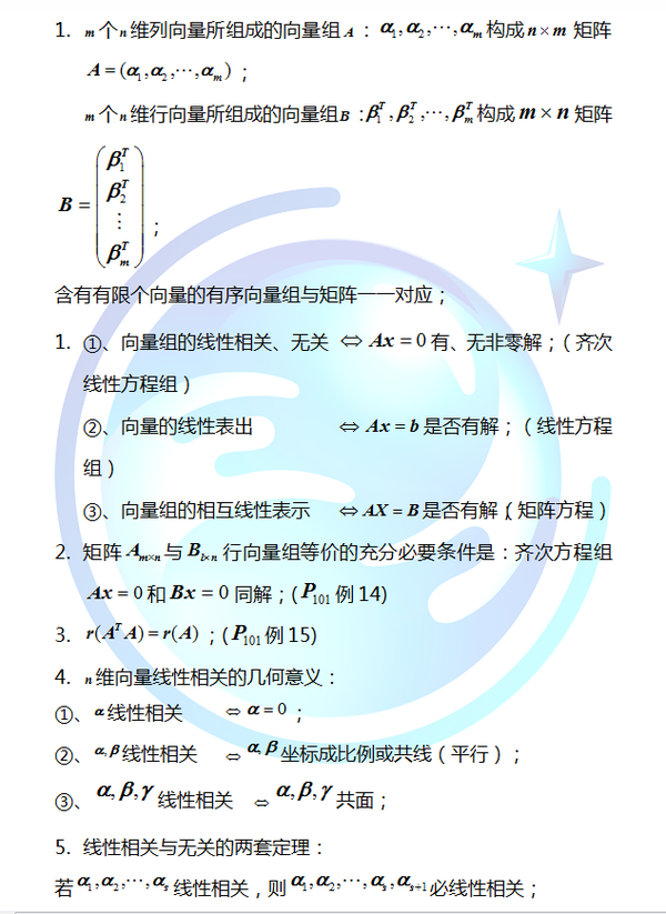 2017考研數學線代知識點歸納總結:向量組的線性相關性