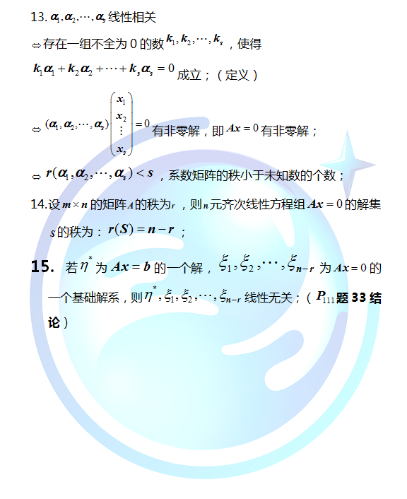 2017考研數學線代知識點歸納總結:向量組的線性相關性