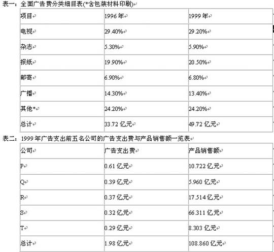 3.1999年廣告費支出最大的五個公司的廣告花費額約占當年廣告費總額的( )。