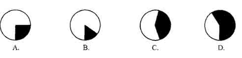 4. 下圖的陰影部分最能體現2002年底全行人民幣個人儲蓄存款余額占人民幣一般性存款余額的比例的是: