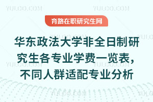 華東政法大學非全日制研究生聚焦法學、管理等領域,畢業獲學信網可查雙證。其專業權威、在職友好、能助力職業晉升。華東政法大學非全日制研究生各專業學費一覽表5-12萬,分法學、管理等專業類別。不同人群如公檢法人員、律師等,可依需求選專業。還有本站考研輔導班提供專屬備考支持。……