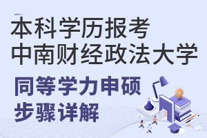 本科學歷報考中南財經政法大學同等學力申碩步驟比較簡單,有選擇專業、進校學習、申碩考試、獲得證書。如有更多中南財經政法大學在職研究生問題,可以咨詢在線老師!